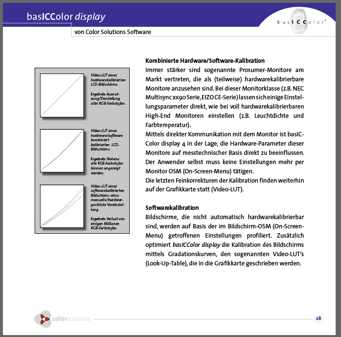 • Danke erst mal für die schnellen Antworten. Ja es stimmt, eine reine Hardwarekalibrierung geht mit basiccolor nicht - das entsprechende Eingabefeld in der Software bleibt beim 2690 WUXi ausgegraut (vielleicht anders, wenn man einen SpectraView hätte...). Möglich ist aber (wie gesagt) die sog. kombinierte Hardware- und Softwarekalibrierung. Was das genau bedeutet, ist mir nicht klar - werde aber mal versuchen, das telefonisch zu erfragen. Im Benutzerhandbuch steht dazu nicht viel, nur das die 90er Serie von NEC zur Klasse dieser kombiniert kalibrierbaren Monitoren zählt (siehe Auszug im Anhang).