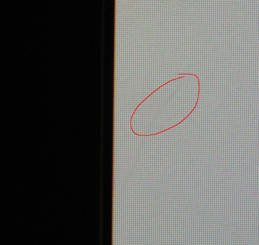 mir ist heute auf meinem TFT ein Anzeigefehler aufgefallen, der die Form eines Haares aufweißt. Da das schwierig zu beschreiben ist, habe ich zur Anschauung ein Photo gemacht.