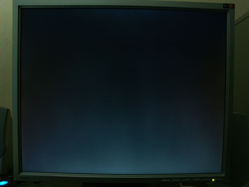 Die Helligkeitsverteilung bei schwarzem Bildschirm lässt auch bei minimaler Helligkeitseinstellung zu wünschen übrig - leider fehlen mir echte Vergleiche, da dies mein erster Desktop-TFT ist. Am unteren Bildrand findet man einen ca. 5-10 cm breiten, hellen Saum (siehe angehängtes Bild). Das übrige Bild zeigt ein relativ gleichmäßiges schwarz.