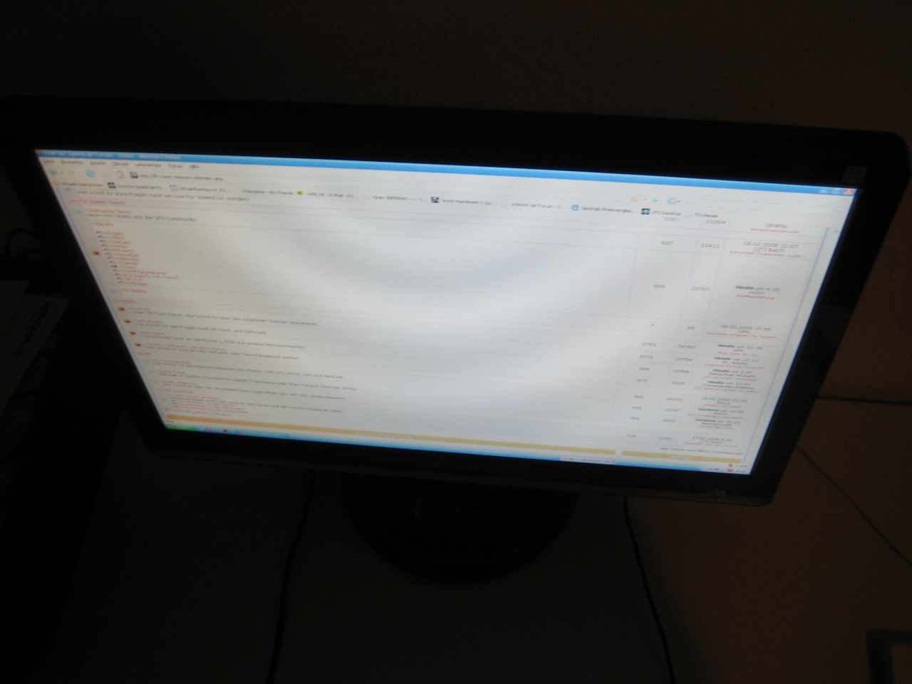 P.S.: Die Fotos von Jo verstehe ich nicht: wie praxisrelevant soll das denn sein, einen Monitor von schräg oben zu fotografieren um irgendwelche komischen grauen Kreisbögen zu zeigen ? Mir ist das sch... egal, wie mein Monitor aussieht, wenn ich von oben drauf schaue ... ich mach sowas bei der praktischen Nutzung nicht