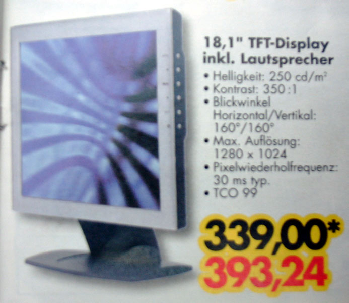 (jedenfalls den hier im Board schon mehrmals besprochenen Medion 18,1" TFT)