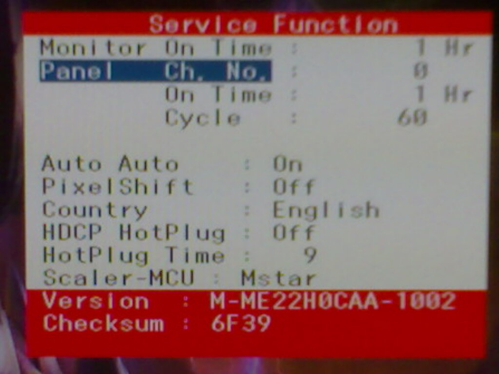 ich habe heute auch den 226BW bekommen, allerdings scheint es wohl eine neuere Generation zu sein, da auf dem Typenschild an der bekannten Position kein Buchstabe mehr zu finden ist. Im versteckten Service-Menü fehlt bei mir der Panel eintrag siehe Foto vom Service Menü). Kann jemand daraus erkennen, um welchen Paneltyp es sich handelt?