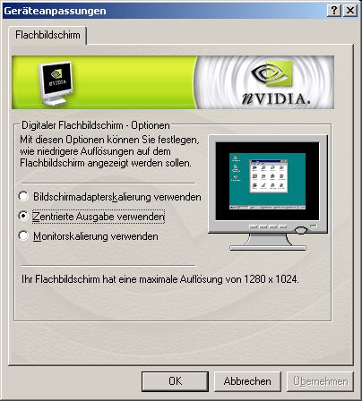 Also das sollte auch digital funktionieren. Geht aber nicht mit allen Auflösungen. Stelle doch mal 800x600 ein und probiere es aus. Das ist ja gerade der Sinn einer 1:1 Darstellung oder einem identischen Seitenverhältnis.