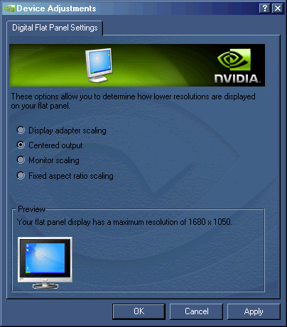 Dort wählst Du: keine SkalierungBedenke, dass die Skalierung durch die Garfikkarte nur ein Kompromiss sein kann, da die Eigenschaften des Monitors nicht berücksichtigt werden können. Zudem wurde schon von Problemen mit der Treiberskalierung berichtet (Leistungsverlust, Abstürze). Trotzdem isses ein Versuch wert.
