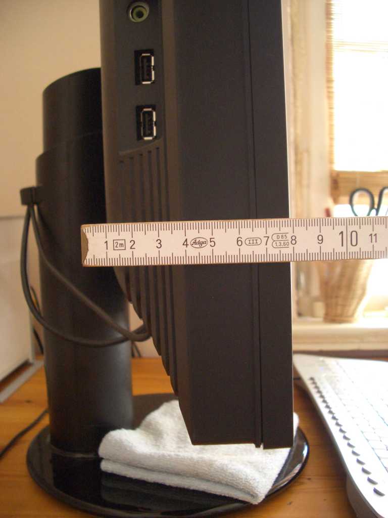 Der Monitor ist links fast 4mm höher als rechts, was mir sehr störend auffällt. Da der Fuß auch über keine Pivot-Funktion verfügt, kann man den Monitor nicht rotieren und auch das lösen un wiederanbringen des Standfußes hat nichts geholfen.
