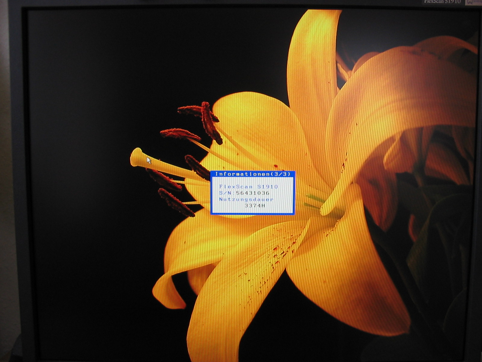Ich biete hier meinen EIZO S1910 in schwarz an. Er hat den ArcSwing-Standfuß (Sehr geil, da man den TFT bis auf die Tischoberfläche absenken kann). Das Gerät ist in einem sehr gepflegten Zustand und hat keine Pixelfehler (auch keine Subpixelfehler).