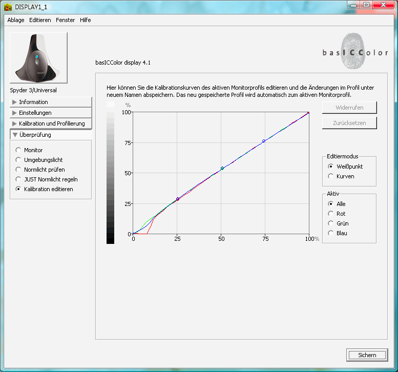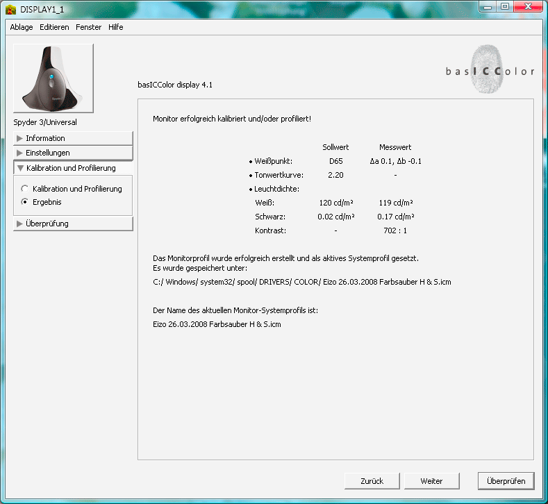 Spyder3 mit basICColor display 4.1.8: