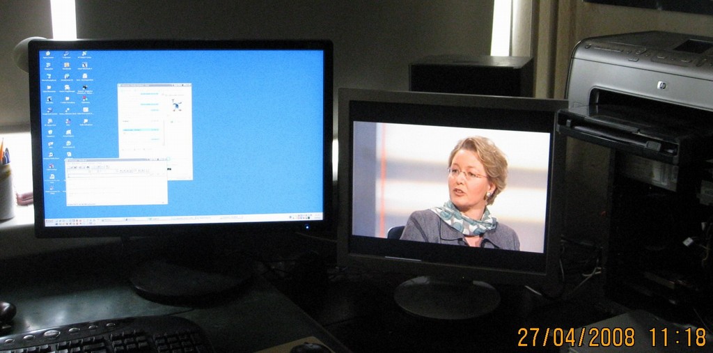 Gibt es jemand der einen PC mit TV Karte hat und das TV Bild auf jedem der beiden Bildschirme sowohl im Fenster als auch im Vollbild schauen kann ?