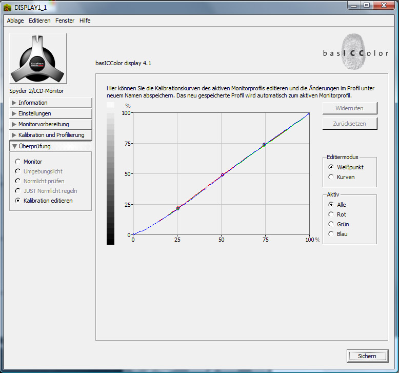 Fazit: Mit der Spydersoftware und auch BasICColor (in Verbindung mit dem Spyder2) hätte ich mich wohl zu Tode kalibrieren können, hätte aber niemals ein für mich zufriedenstellendes Ergebnis erzielt.
