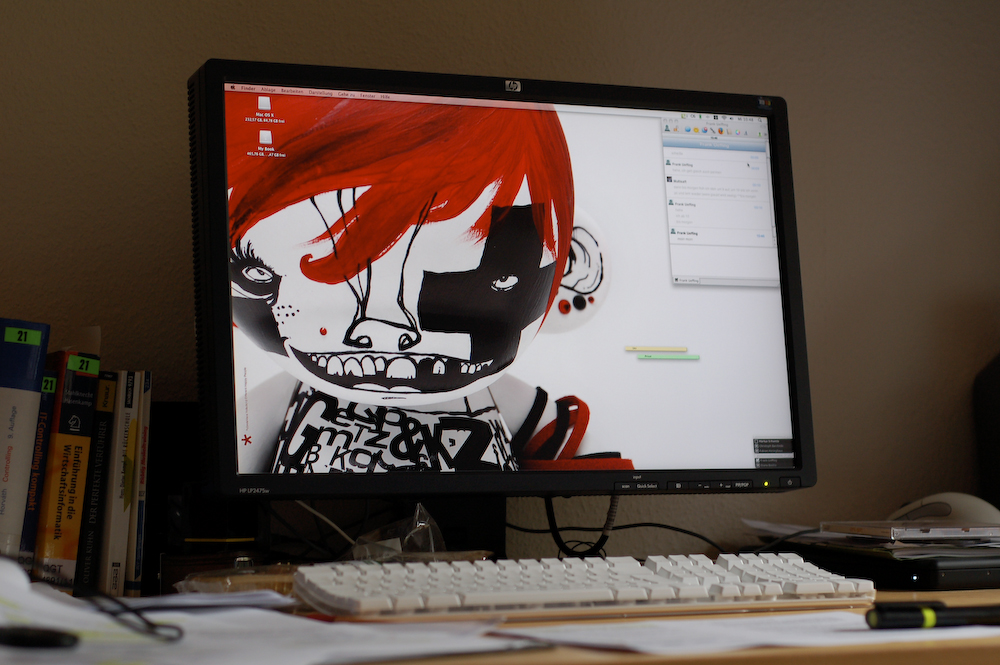auch wenn ich heute nachmittag meine letzte offizielle klausur des studiums schreibe, hier ein bild vom desktop mit meinem lieblingsbackground den ich schon seit gut zwei? jahren fast immer verwende