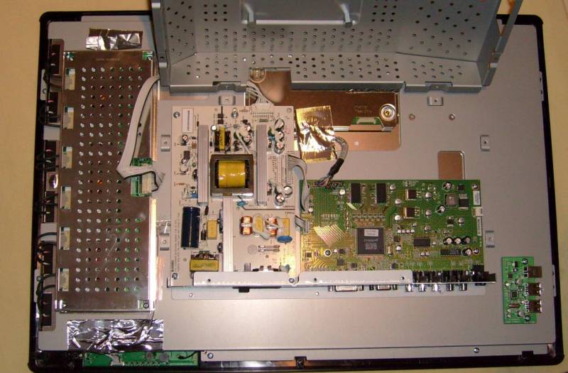 Besonders die Verschraubungen der Netzteilplatine sollten m.E. nachgezogen werden. Dazu muss man erstmal den Metalldeckel wo der Standfuß angeschraubt war lösen. Den Deckel kann man dann wegklappen ohne Kabel oder Klebestreifen abmachen zu müssen.