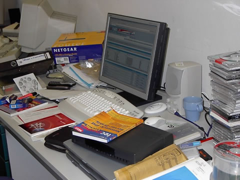 Ach ja, und wenns schon um Unordnung geht..ich mein..so richtig unordentlich ist es zwar nicht, aber immerhin sieht man, dass an meinem Schreibtisch auch jemand sitzt ;)