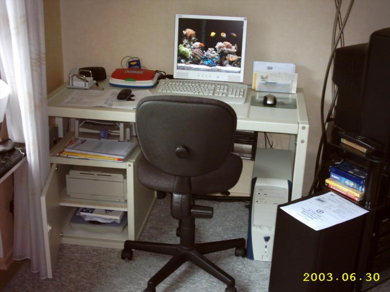 Wie man sieht, teile ich den Schreibtisch mit dem "Computer" meiner Kinder.