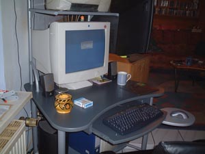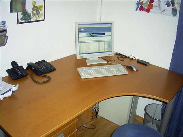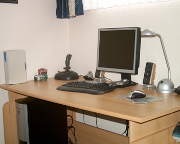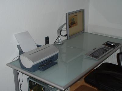 und so siehts momentan am arbeitsplatz von meinem freund aus (schreibtisch ist erst neu, daher auch so aufgeräumt). würdest du net auch sagen das der besser zu meinem moni passen würde? ![]()