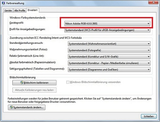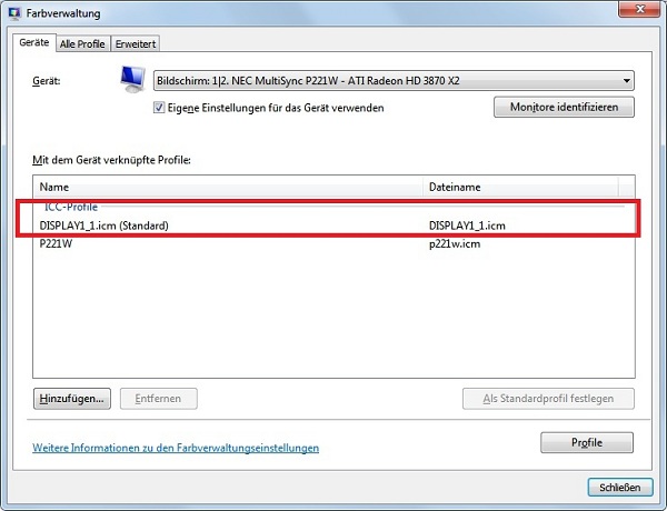 Nach der Installation (Hardwareinstallation) wurde in der Systemsteuerung ein neues Farbprofil angelegt (siehe Bild). Ist das nicht nur bei Softwareinstallation der Fall