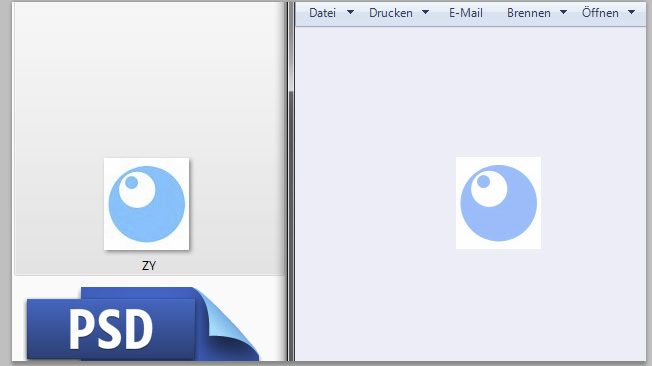 hier der erste screenshot. links das bild inder ordnervorschau. rechts geöffnet in der windows bildvorschau.