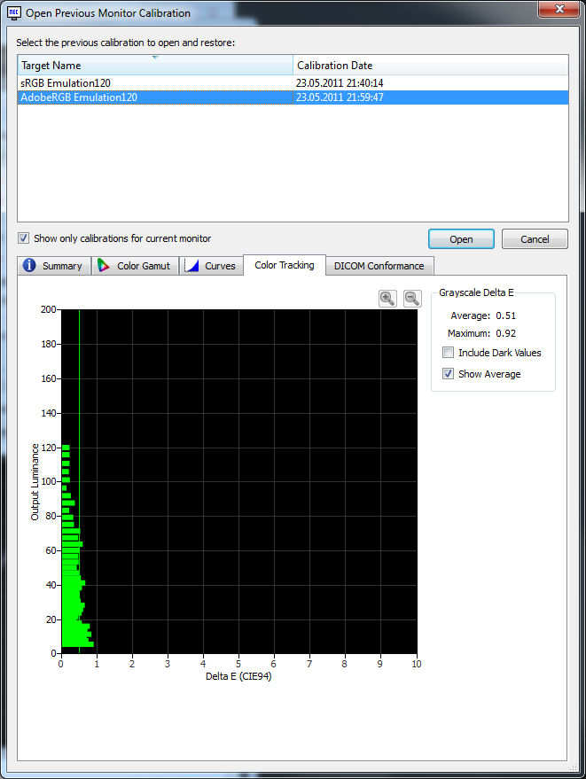 Kann ich in Spectraview2 erkennen, ob die Helligkeit nicht evtl. zu niedrig ist, das sie alleine durch das Backlight geregelt wird? Im Test stand etwas von unterhalb von 135cd/m2. Im OSD sollen ja laut Handbuch die Werte rot werden, wenn man die Helligkeit zu niedrig wählt. Wobei ich da auch problemlos auf 110cm/m2 regeln konnte ohne dass etwas rot dargestellt wurde.