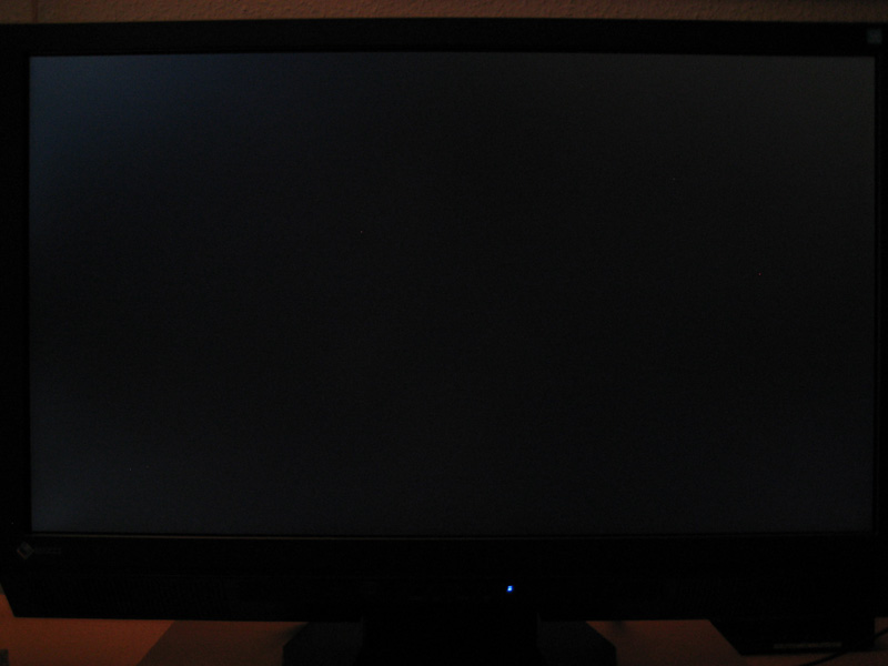 Unter anderem dadurch ist der Schwarzwert des Monitors absolut lachhaft schlecht. Selbst ohne die strahlenden Ecken leuchtet der Eizo selbst bei 50% Helligkeit noch ungemein.Ich hab ihn jedenfalls wieder zurückgegeben, für den Preis war der Bildeindruck grottig schlecht.