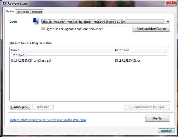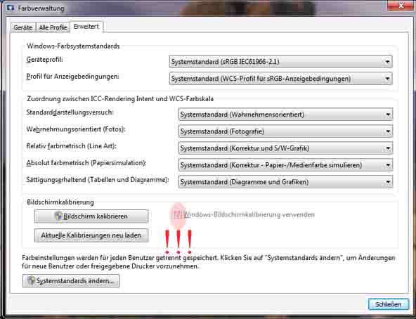 Auch an das alles entscheidende Häkchen, das in Win7 gesetzt werden muss, damit Monitorprofile überhaupt geladen werden, habe ich gedacht: