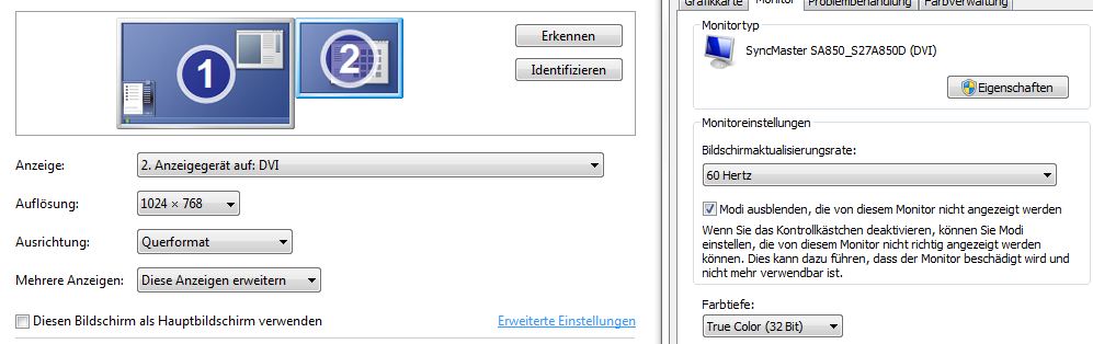 Wenn ich von meinem alten Monitor ein DVI-Single-Link Kabel dazu anschließe ... klappt es nach 20min Video-Display-Modi-hin-und-her-Gehopse.