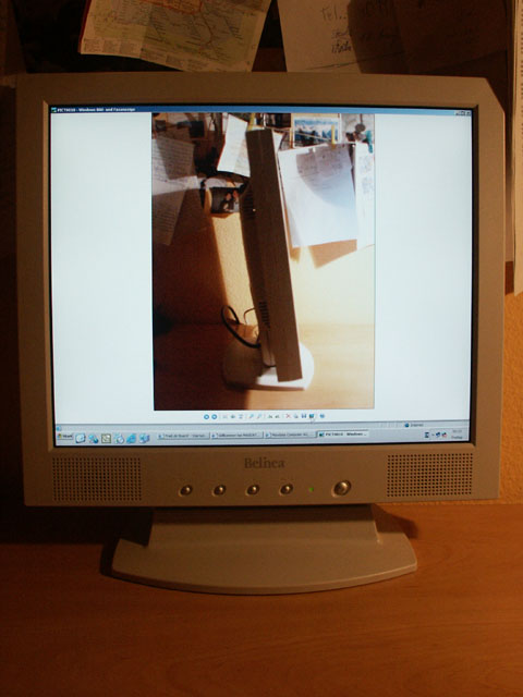 mein Belinea 101910 wird jetzt hier Angeboten. Er ist in einem Top Zustand und funktioniert tadellos. Keine Pixelfehler, keine Subpixelfehler. Habe gerade nochmal den Nokia Monitortest gemacht. Alles 1A. Er wird mit der Originalenrechnung verkauft. Gekauft bei pckauf2000 GmbH am 11.02.2003. Also knapp (etwas weniger) ein halbes Jahr alt und hat damit noch 2 1/2 Jahre Garanite auf alles . Er wird orignal verpackt mit allen Kabeln und Dokumenten. Verschickt wird über Hermes Versand, da ich mit denen die besten Erfahrungen habe, d.h. wird persönlich bei mir abgeholt und geliefert. Ich schätze 550€ für einen tadellosen 19" inkl. Versand ist hoffentlich nicht viel. Test findet ihr hier auf Prad.de Board und bei der pcprofessional Seite. Entweder per Überweisung oder per Nachnahme (Nachnahme geht aber mit der DHL oder UPS , habe aber mit der Post auch schlechte Erfahrungen gemacht und ein guter Freund arbeitet bei denen und was der mir so erzählt... also, den würde ich nicht gerne den Belinea anvertrauen