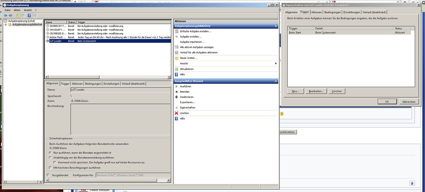 Komisch bei mir taucht der LUT Loader in der Aufgabenplanungsbibliothek gar nicht erst auf. Hab das i color schon 2 de und wieder installiert