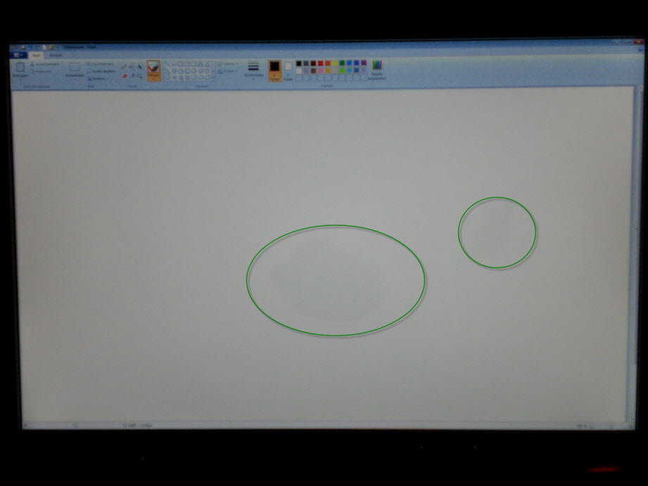 ich habe einen gebrauchten Monitor hier (SyncMaster T260). Auf hellem Untergrund sieht man zwei "Flecken", in dem alles einen dunkleren Farbstich hat. Ich hoffe das ist auf den Fotos zu erkennen, in Echt fällt es eine Nuance stärker aus und stört auch. Die Flecken sind einmal 10 x 7cm und 4 x 2cm groß. Sind das Pixelfehler? Ich habe wahrscheinlich keine Chance dies irgendwie beseitigen zu können, oder?