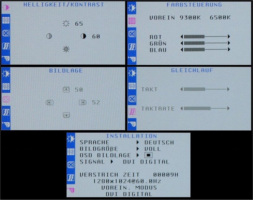 Auf weitere Deatils möchte ich hier nicht eingehen. Ausstattung, Bedienung, etc. sind hier schon oft genug beschrieben worden. Wer sich mal das OSD anschauen möchte, hier sind ein paar Bilder: