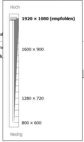 • Bei der Auflösung wird immer die maximale oder empfohlene angegeben. Woher bekomme ich aber die anderen möglichen Auflösungen?