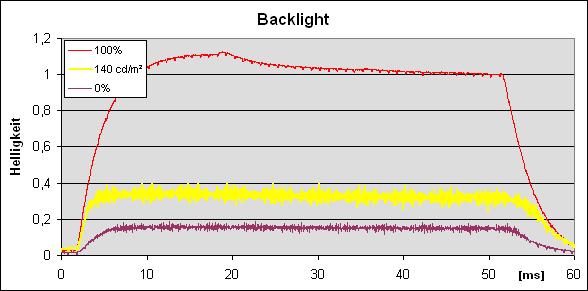 Siehe hier ein Bild vom U2713H:Bei PWM wird die LED bei voller Amplitude einfach nur schnell in gewissen Abständen (je nach gewünschter Helligkeit) aus/ein geschalten.