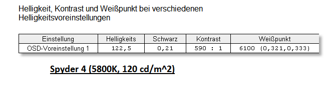 Nach kurzer Kalibrierungszeit wird man aufgefordert die Helligkeit auf +- 120cd/m2 anzupassen durch Regelung des Backlights. Ich habe die Helligkeit als Paramter genommen die ich dann heruntergeregelt habe (Fehler?).