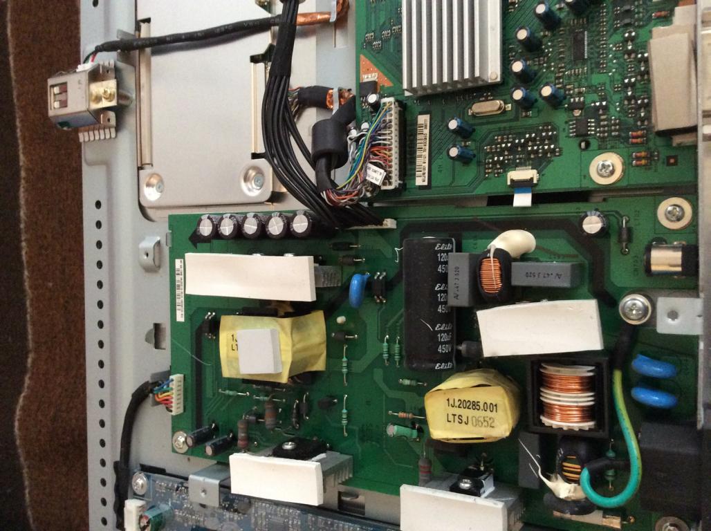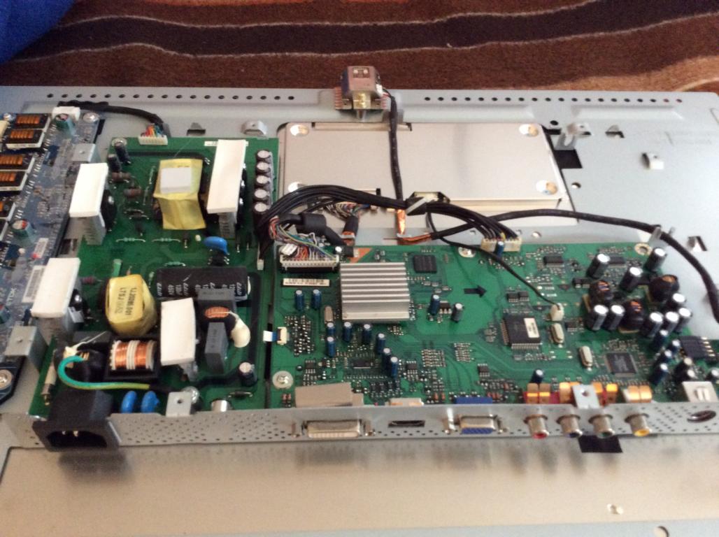 Vielleicht hat jemand eine Ahnung welches Bauteil kaputt sein kann. Es gibt 3 Platine im TFT - eine Netzteilplatine - eine Platine mit den Anschlüssen von HDMI, DVI usw. und eine AUO M240UW01 Controll - Platine. Ich sehe da keine Verbrennungen oder aufgeplatzte/gewölbte Kondensatoren. Von allen Bauteilen hab ich ein Bild falls das jemand sehen will.
