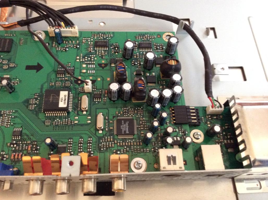 ich bin inzwischen weiter gekommen. Vorhin nochmal aufgemacht und paar Kabel mehr abgemacht und neu angesteckt. und nochmal alles fotografiert. Dann bin auch auf die Idee gekommen einfach mal per S-Video meine alten DVD Player von 2003 zu probieren. Und was war, Bild über S-Video geht. OSD ging dann auch, geht also nur wenn er ein Signal hat.