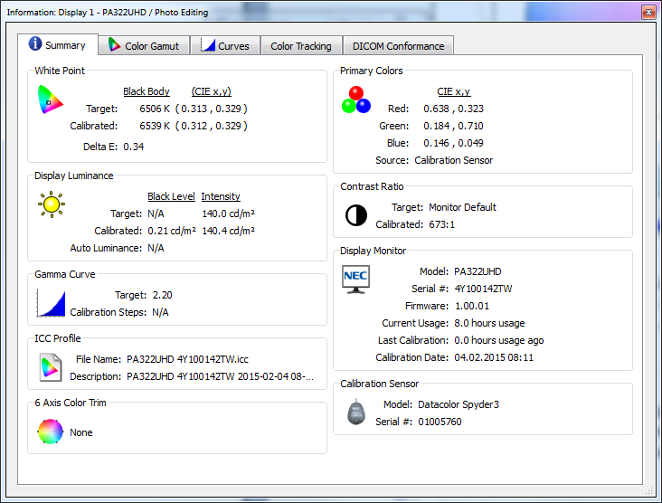 Die erste Kalibrierung nahm ich für mit dem Target "Photo Editing" vor: