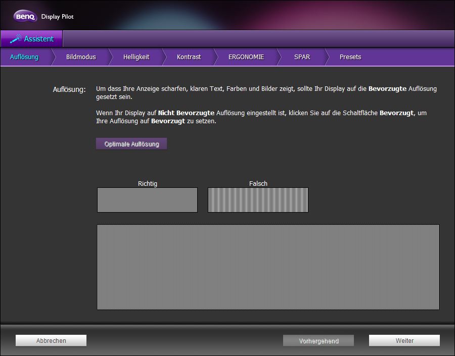Wie auch immer, danach habe ich mir die mitgelieferte Software "Display Pilot" installiert und den Assistentenmodus gestartet. Hier soll man die Auflösung richtig einstellen, damit Text und Bild scharf angezeigt werden. Ich habe die empfohlene Auflösung von 1920x1080 und dennoch ist das Bild näher an "falsch" als an "richtig" (Siehe Anhang). Verbunden habe ich den Monitot mit der Graka mit einem DVI Kabel. Ich habe den Monitor auch an meinem alten PC (ATI Radeon HD 4600) angeschlossen und das gleiche Ergebnis bekommen.