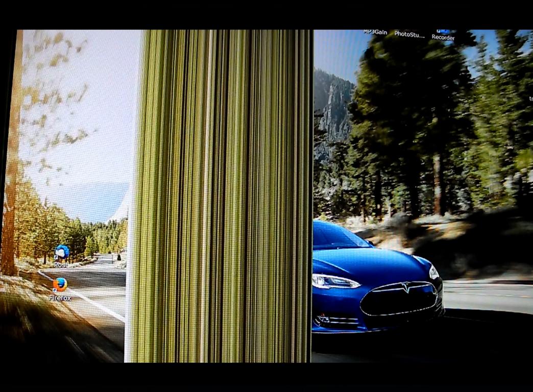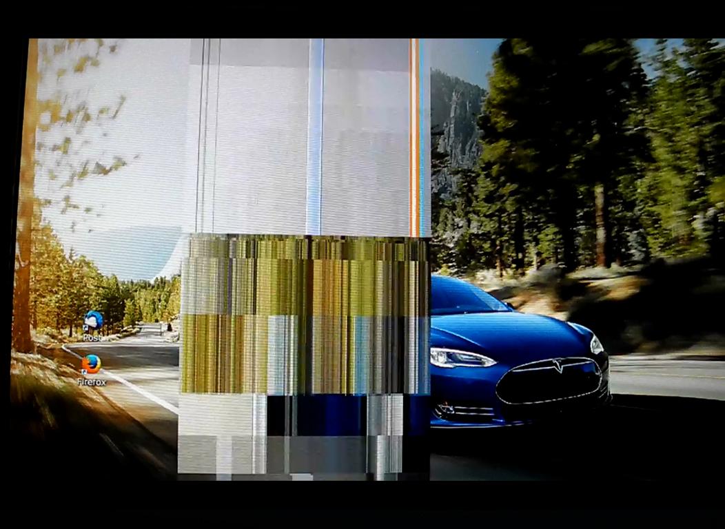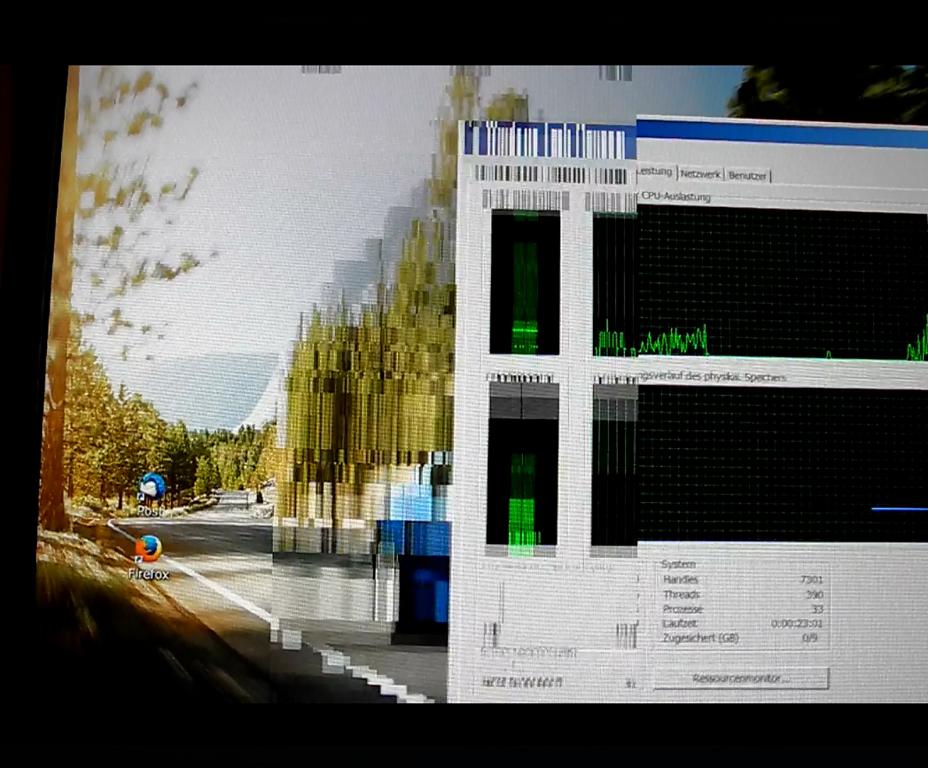 Heute aufgebaut und leider wohl defekt. Fängt in der Mitte an zu zittern und wechselt dann in senkrechte Streifen.