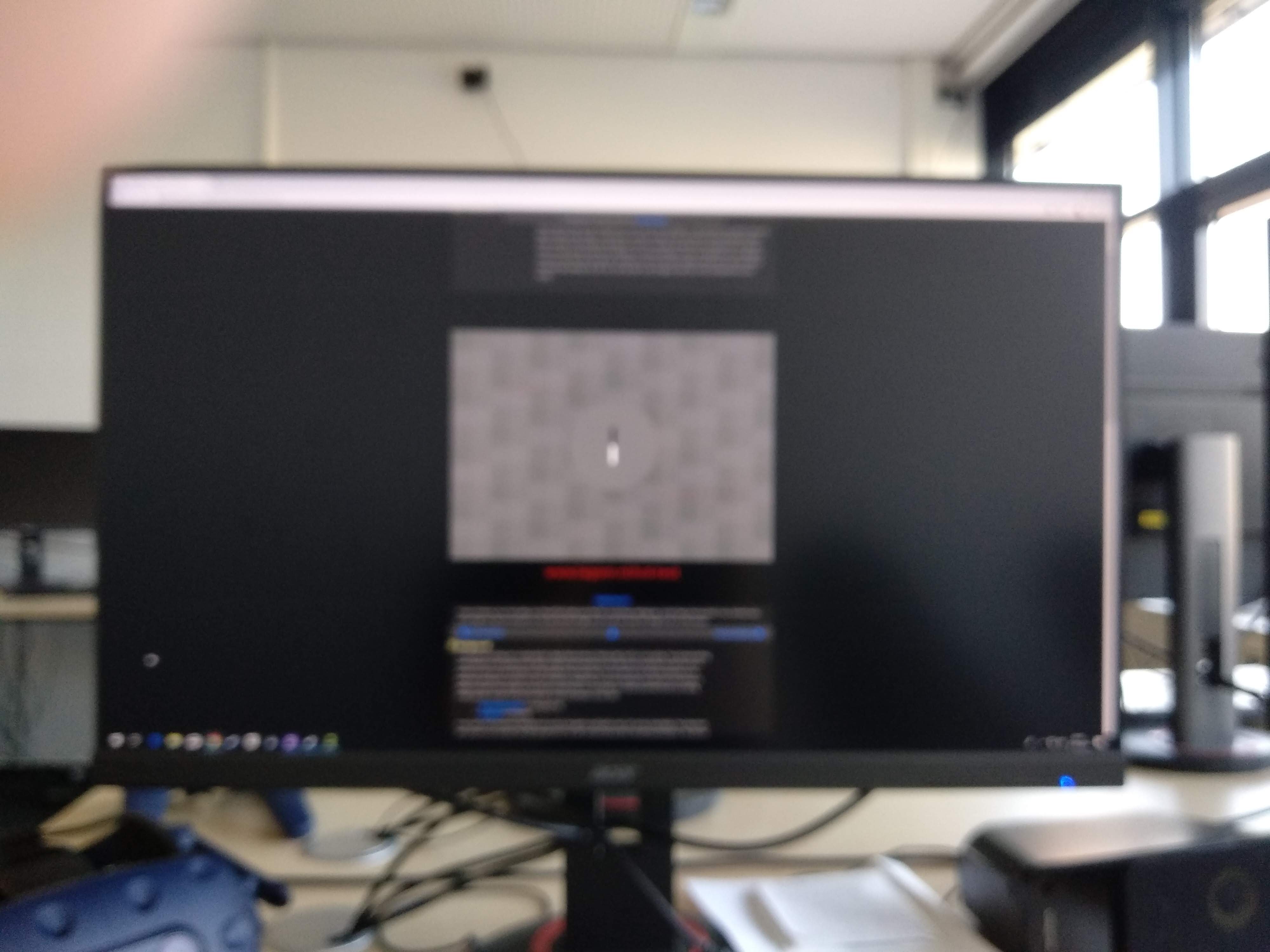 Die Bilder sind absichtlich unscharf, da dieser Test es genau so erfordert. Bei einem "korrekten" Monitor verschwimmt beim Zusammenkneifen der Augen oder bei der Aufnahme eines unscharfen Fotos alles zu einer einheitlich grauen Fläche. Bei einem Monitor, der das Bild künstlich schärfer oder unschärfer macht, sieht man die Strukturen wie in meinem Foto. Kannst du ja mit deinem Monitor selbst mal testen. http://www.lagom.nl/lcd-test/sharpness.php