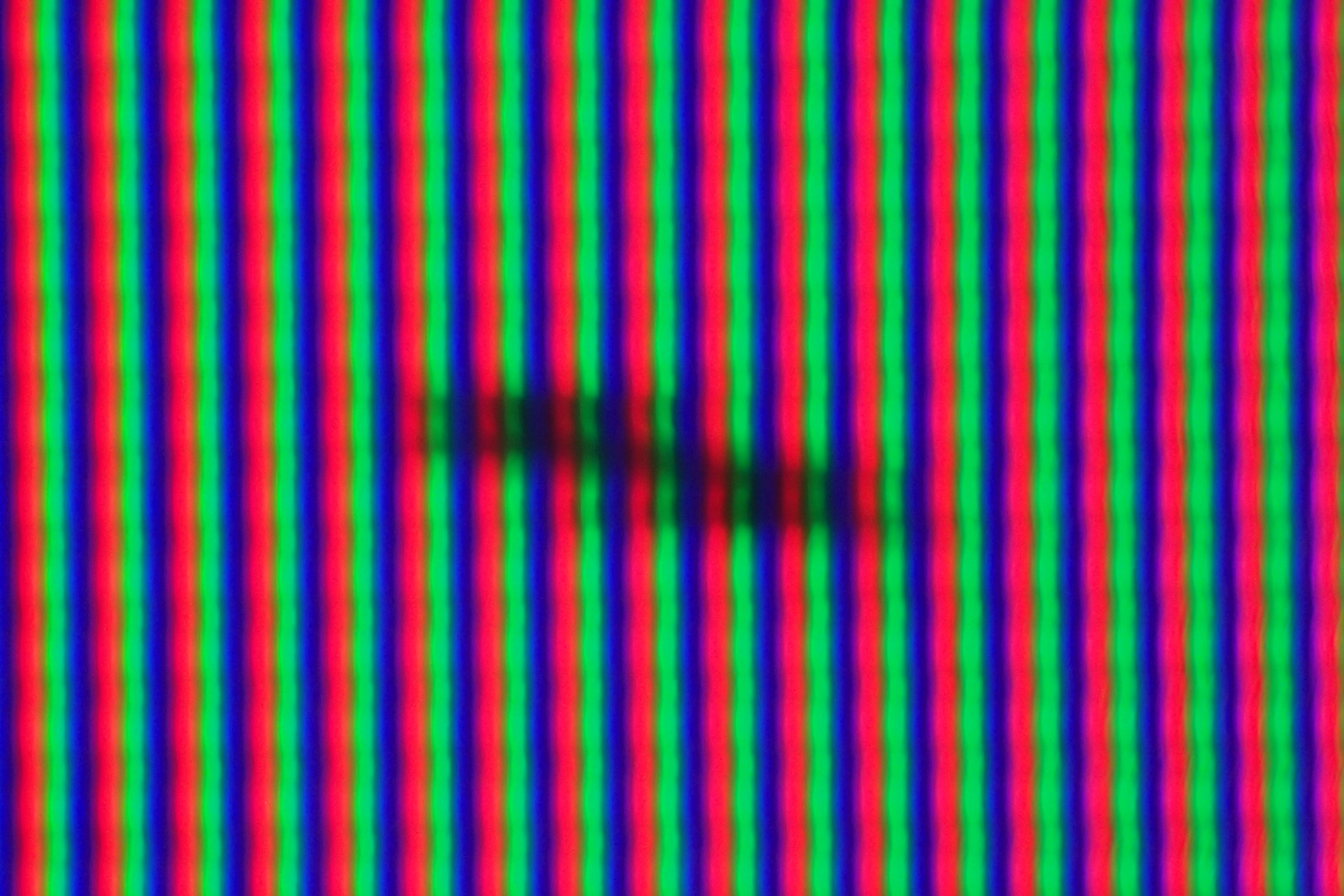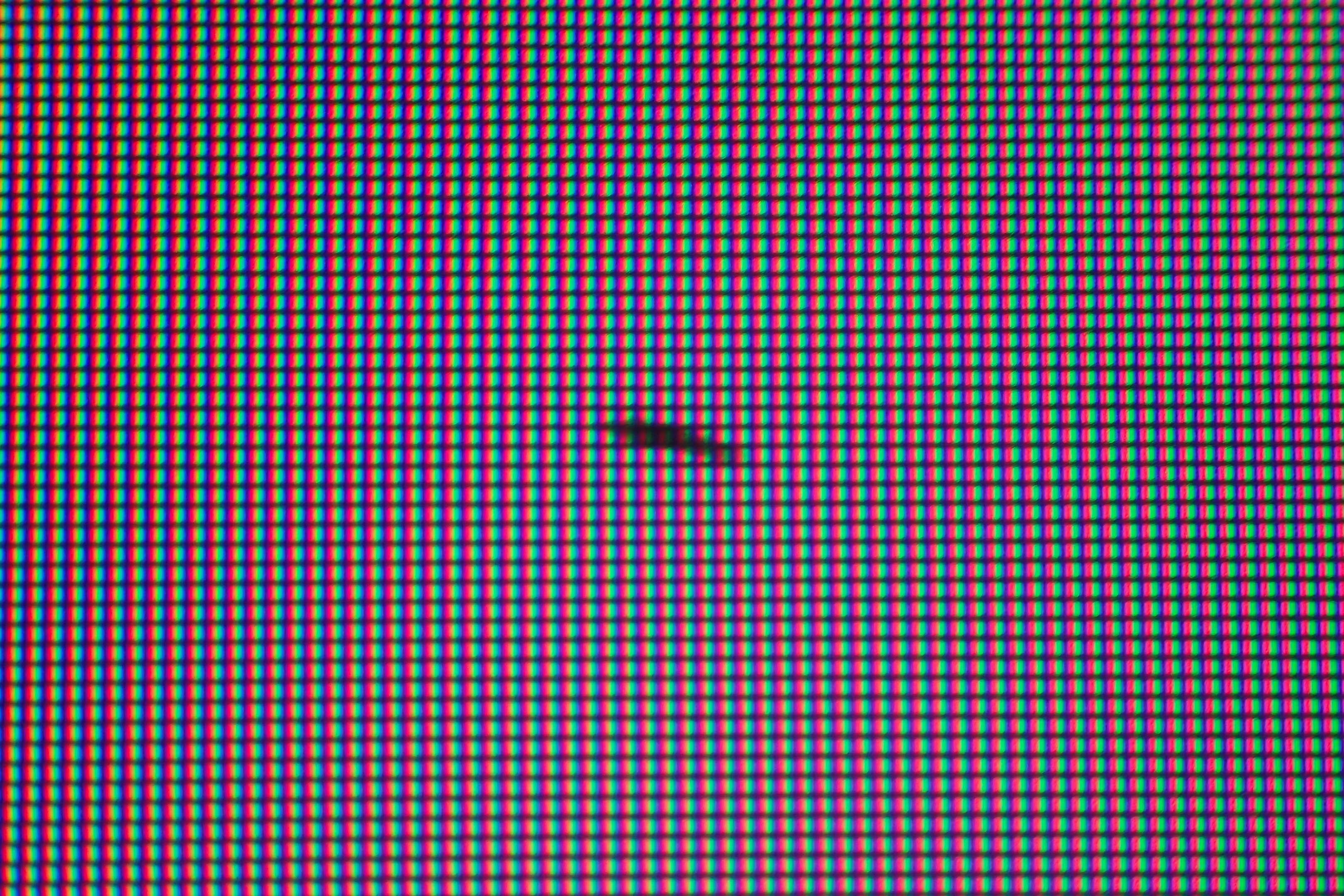 Im linken Bereich ist mir ein kleiner grauer Strich aufgefallen. Zunächst dachte ich an ein größeres Staubkorn, jedoch ließ sich der Strich auch nicht mit einem Mikrofasertuch entfernen.