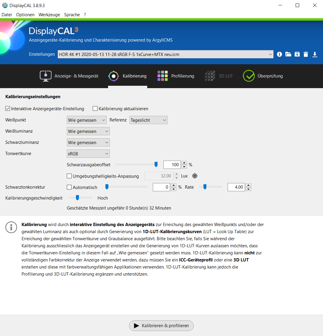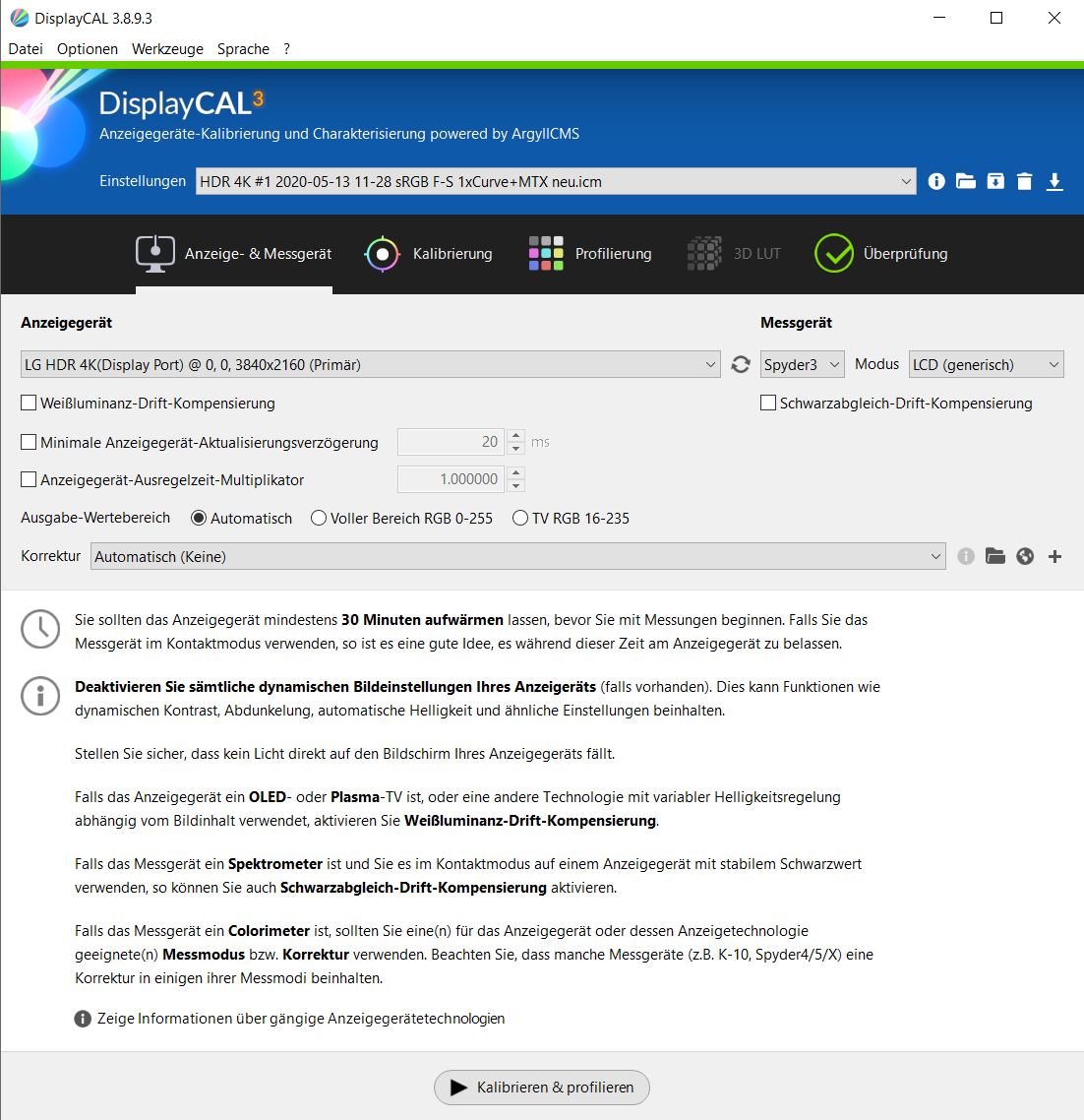 Ich nutze DisplayCAL und ArgyllCMS mit einem Spyder 3 Pro unter Windows 10 64 bit Version 2004 am LG 32UD99-W.