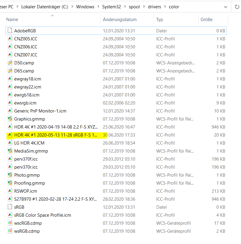 Ich habe mich für Matrix und Einzelne Kurve entschieden, da LUTs angeblich von Windows nicht unterstützt werden. Dachte es liegt daran. Auch mit einem LUT Profil geht es aber nicht.