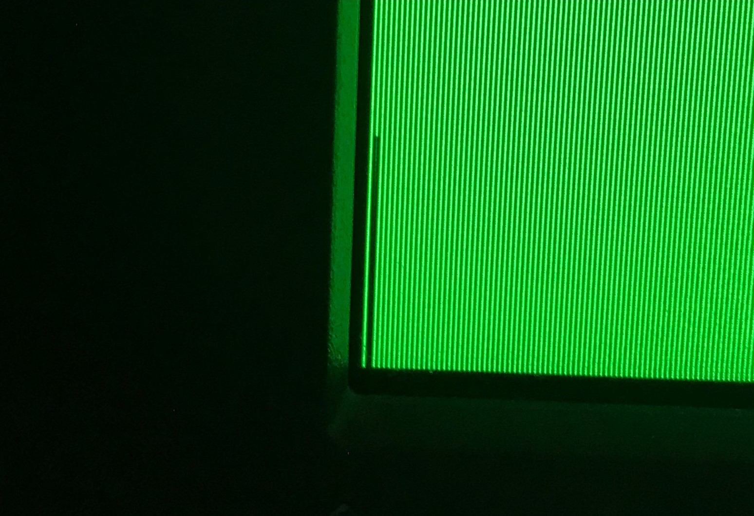 Erst dachte ich an eine Reihe Pixelfehler, bis ich bemerkt habe, daß die Farbe sich je nach Hintergrund ändert.
