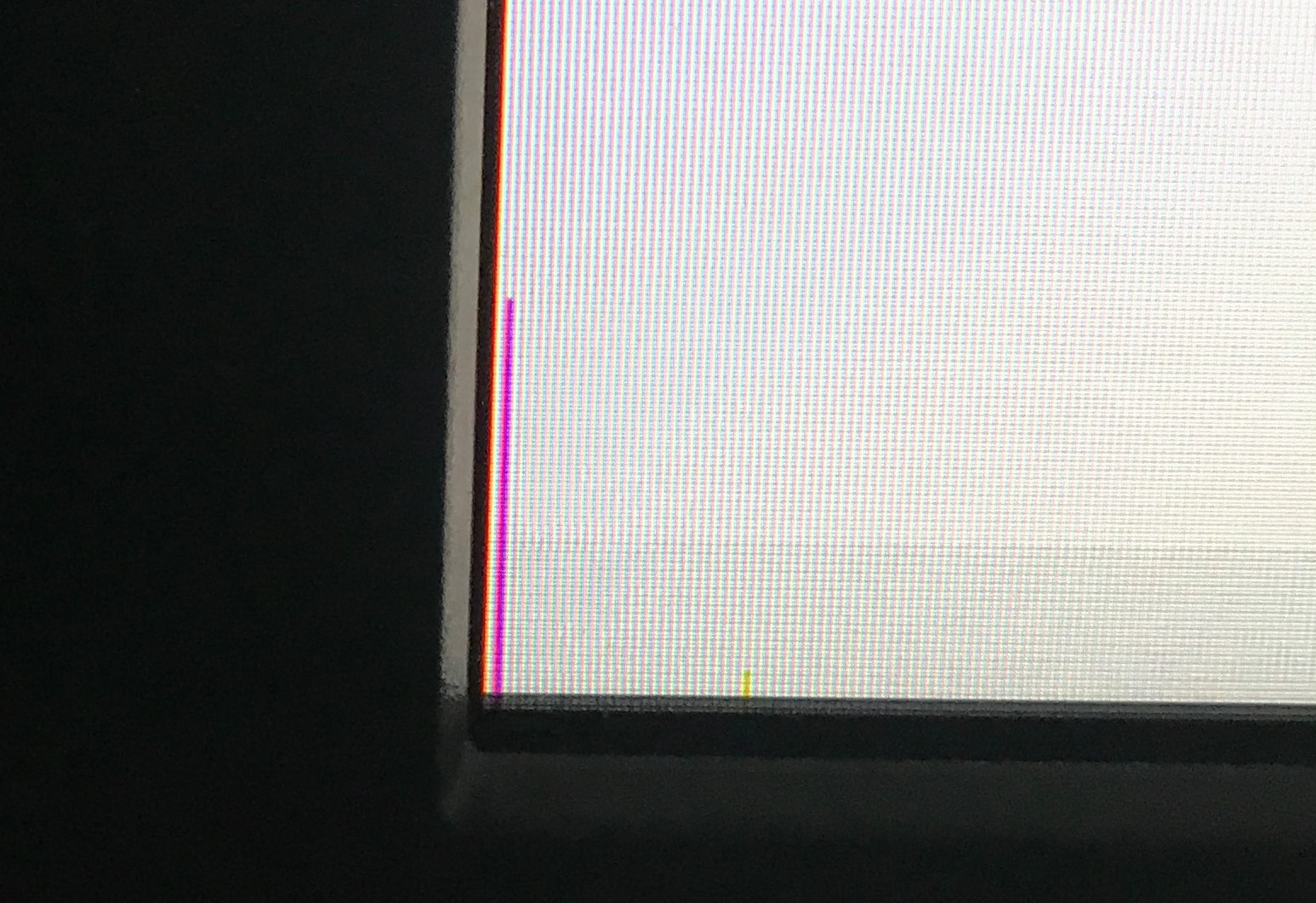 ich habe heute an meinem Eizo eine ca 1,5 cm lange, farbige, vertikale Linie links unten in der Ecke entdeckt.