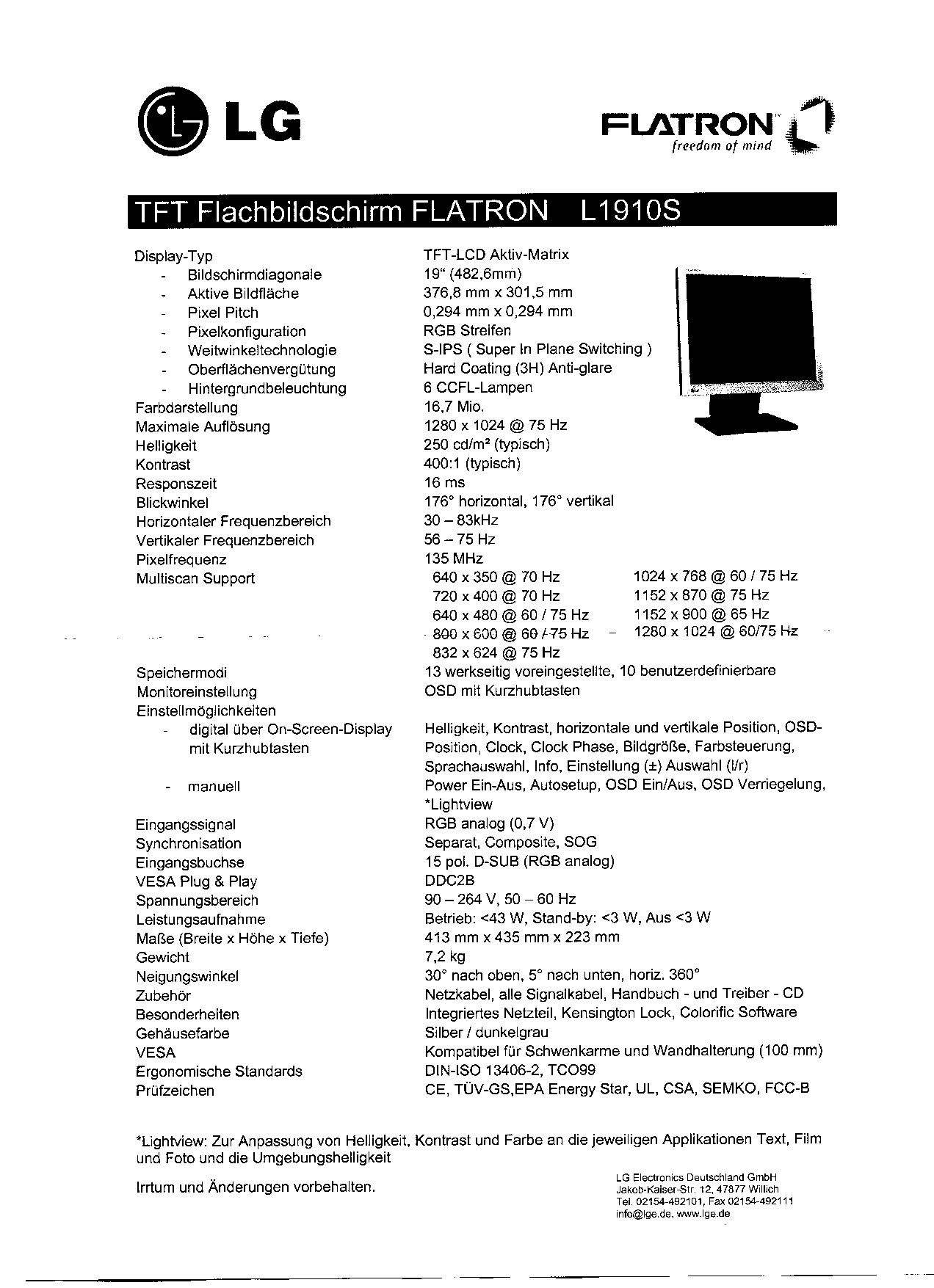 Auf dem Datenblatt steht ja extra drauf "IRRTÜMER UND ÄNDERUNGEN VORBEHALTEN". Und nur ein Formloser Stempel von LG Electronics.