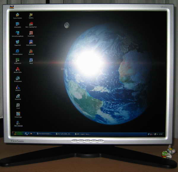 2. Angeschlossen mit dem beiliegendem DVI Kabel an meine GF4 TI 4200 von Leadtek. PC hochgefahren und erstmal geschaut , natürlich kein Vergleich zu meinem alten 17 Zoll CRT von Hitachi.Treiber Installiert und den ViewSonic erstmal nur angeschaut ,schon schick das Teil !