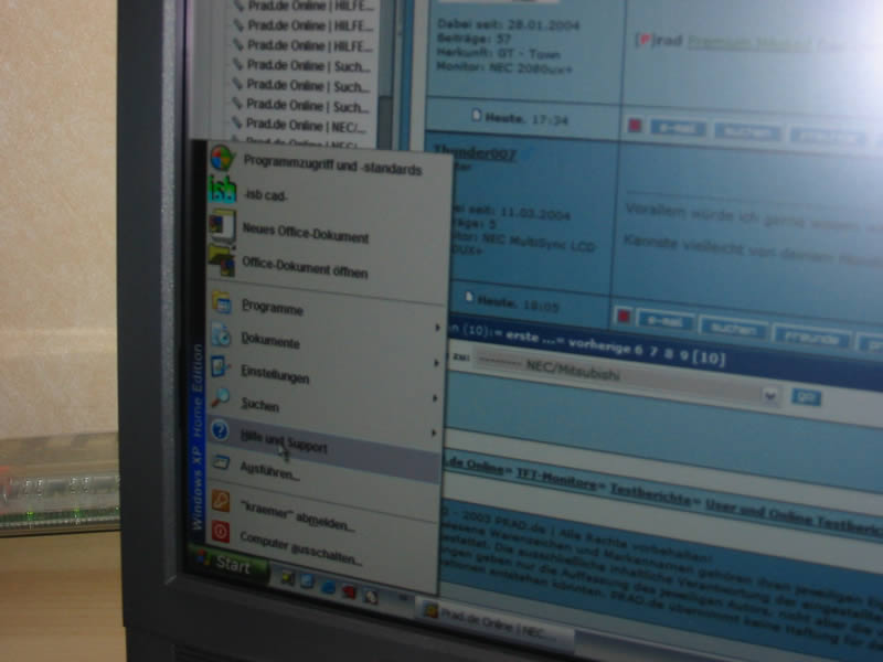 So, dann kommen wir mal zum Bildeindruck. Erster Blick natürlich auf die Taskleiste auf der Suche nach den Streifen. NICHTS! Super. Ein Klick aufs Startmenü. Sche***. Da waren sie. Oder doch nicht?. Man kann etwas erkennen. Aber im Gegensatz zum 2080UX+ kaum wahrnehmbar, und wirklich nur beim näheren Hinschauen. Wenn ich nichts von den Dingern wüsste hätte ich sie wirklich nicht erkannt. Aber bei den oberen Rahmen der Windows-Fenster, die ja eigentlich das gleiche Design wie die Taskleiste haben war absolut nichts zu erkennen. Sofort die prad.de - Seite geöffnet und auch dort nichts negatives feststellen können. Das machte mich doch etwas stutzig. Beim 2080UX+ waren sie überall deutlich zu erkennen. Ich hab dann mal den 481 analog angeschlossen und zum direkten Vergleich daneben gestellt.