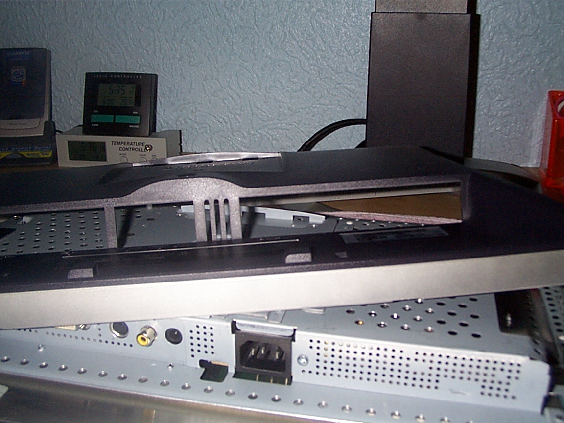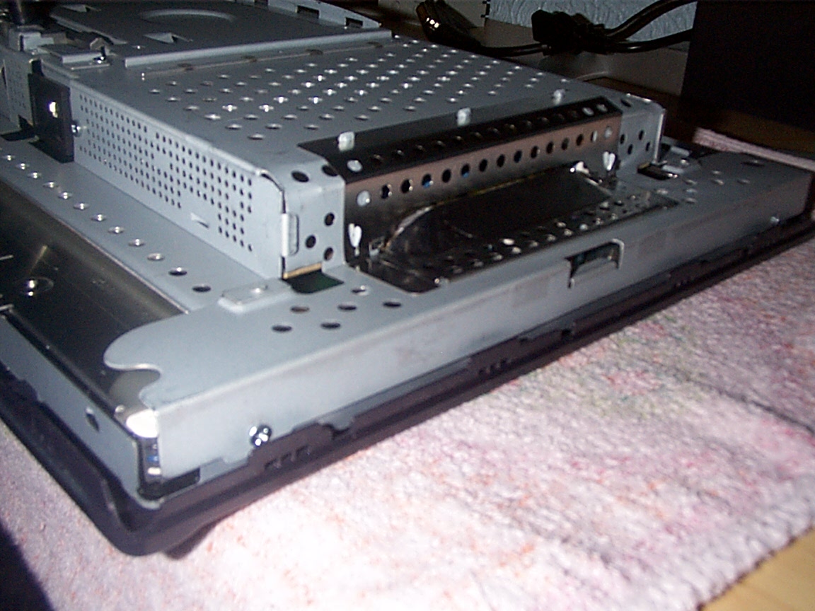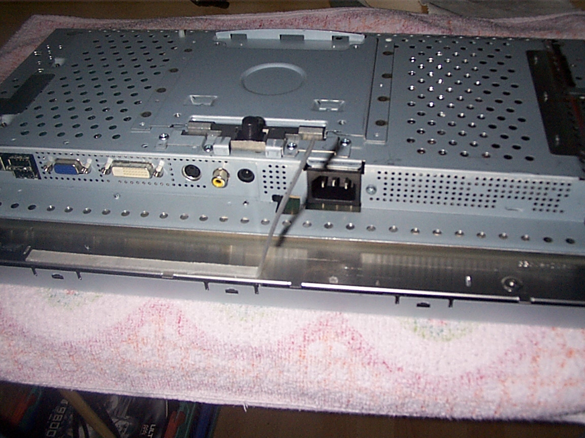 so mal paar bilder noch dazu..da bescgreib ich noch mal die vorgehnsweise die ich angewahnt habe..so das display auf den tisch legen die 4 schrauben raus unter dem halter in der mitte, dann den gehäusedeckel in der unteren nut mit den fingernägeln abziehen..geht etwas schwerr anfangs dann kommt es aber wenn mann den anfang hat..