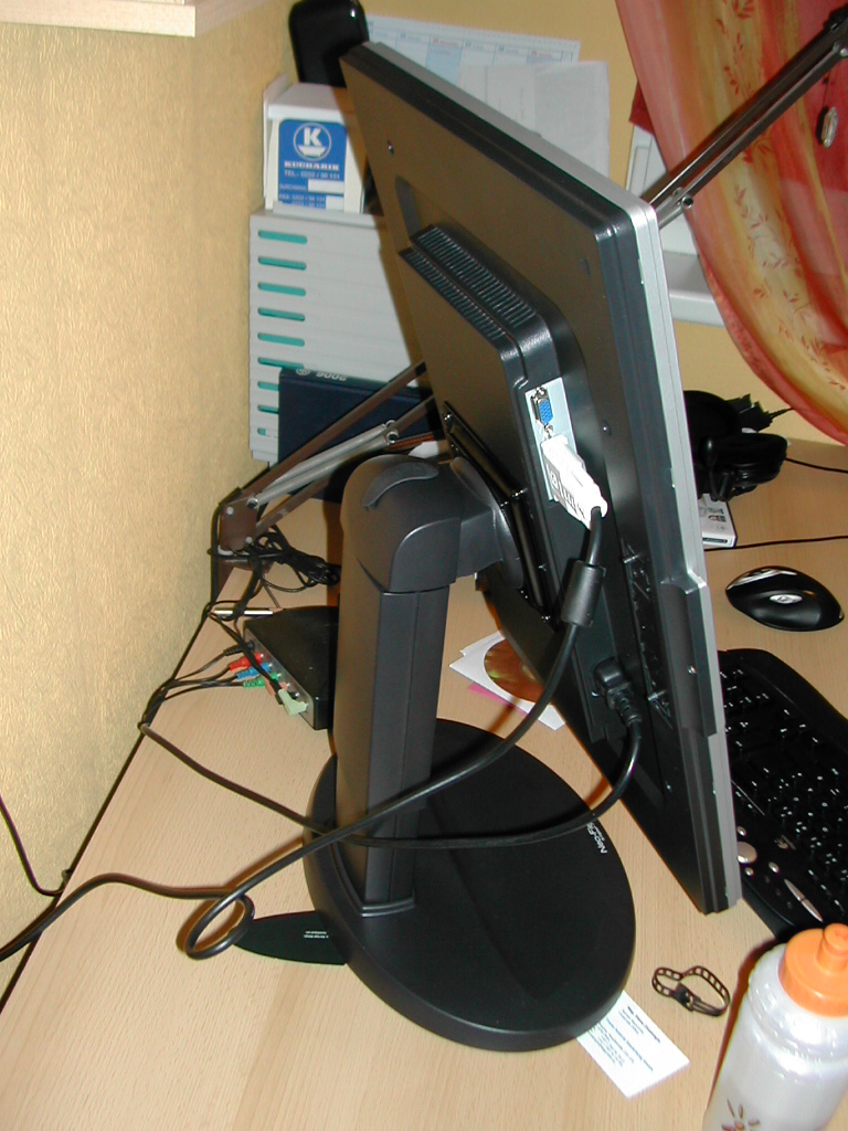 Dann die Frage...zuerst auf Pixelfehler überprüfen mit dem Originalfuss um ihn gegebenenfalls zurückzuschicken oder gleich den vorher gekauften Ergotron-Fuss aufmontieren. Achwas wenn dann gleich alles. Also vorsichtig den mitgelieferten Fuss gelöst und den Ergotron aufgeschraubt.