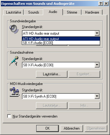 Die Ausgabe per HDMI funktioniert bei mir. Ich habe an der Grafikkarte (ATI 4870) am DVI einen HDMI-Konverter und gehe mit dem HDMI Kabel in den Monitor. Als Soundkarte habe ich die X-FI. Der ATI Catalysttreiber installiert dann einen eigenen HD- Treiber für die Soundausgabe über die Grafikkarte (obwohl die nur zwei DVI Ausgänge hat). Ich glaube, dass der PCI-Expressbus dann den Ton als bitstream abfängt. Auf jeden Fall kann man in der Sys-steuerung in den Soundoptionen auswählen, welches Gerät die Ton Ausgabe erledigen soll.