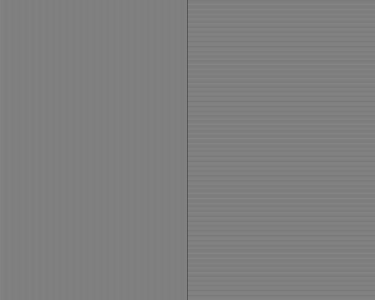 Das Seitenverhältnis ist nicht so wichtig, 20" im 4:3 Format haben einfach eine höhere Auflösung und meist auch gute Algorithmen. Je höher die Auflösung, umso mehr Pixel stehen zur Darstellung des interpolierten Bildes zur Verfügung. Vergleiche mal Bild 4 mit Bild 5, beide nutzen den gleichen, guten Algorithmus, und Bild 5 ist eigentlich seitengerecht. Trotzdem sieht Bild 4 besser aus, weil mehr Zeilen zur Interpolation zur Verfügung stehen. Zwar ist Bild 5 etwas gleichmäßiger, dafür sind die weißen Zeilen aber alle Grau.