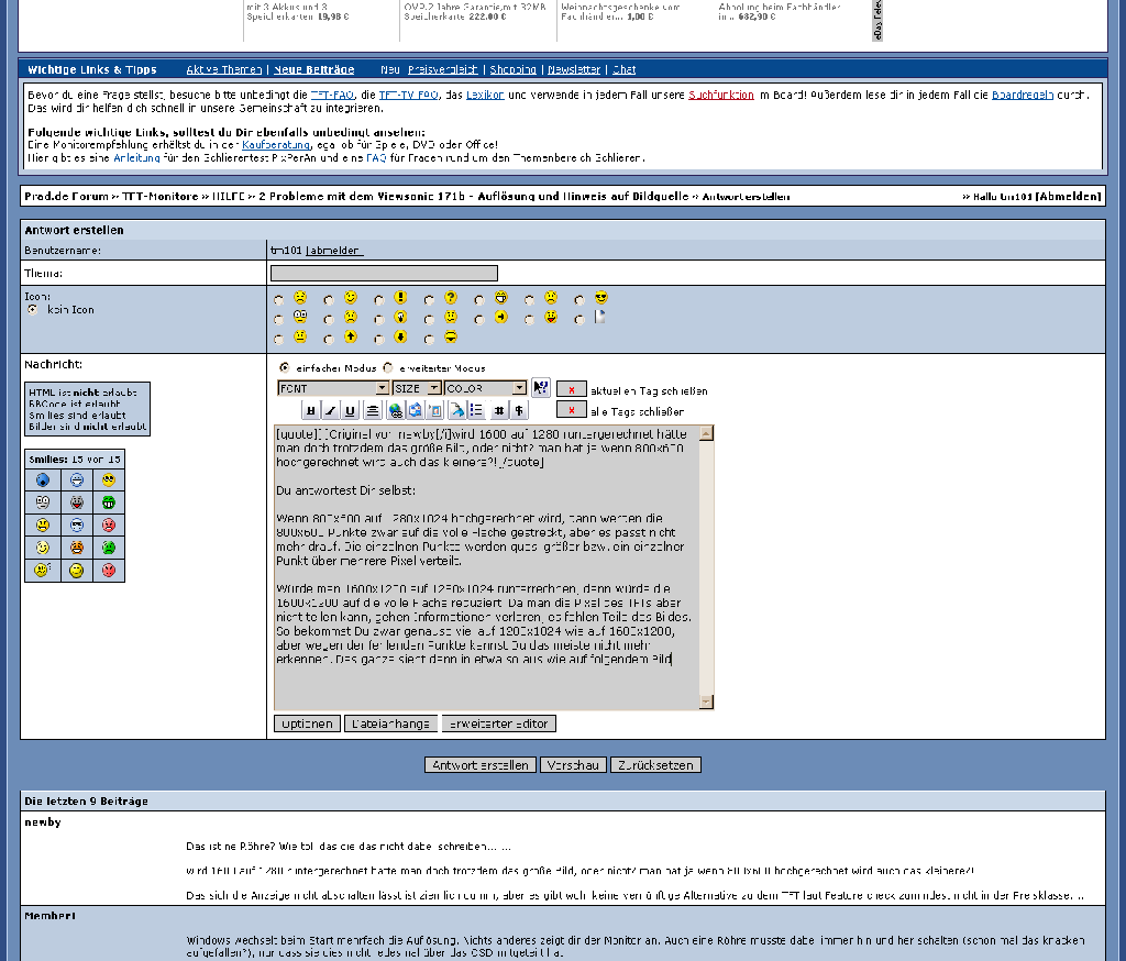 Ich teste mein neues Model noch an einem anderen PC, dann setze ich mich wieder mit Viewsonic in Kontakt. Ich habe ihnen aber schon mitgeteilt, dass der Austauschmonitor keine Besserung brachte. Der Service war bis jetzt einwandfrei, deshalb denke ich, dass sich am Ende eine Lösung finden wird.